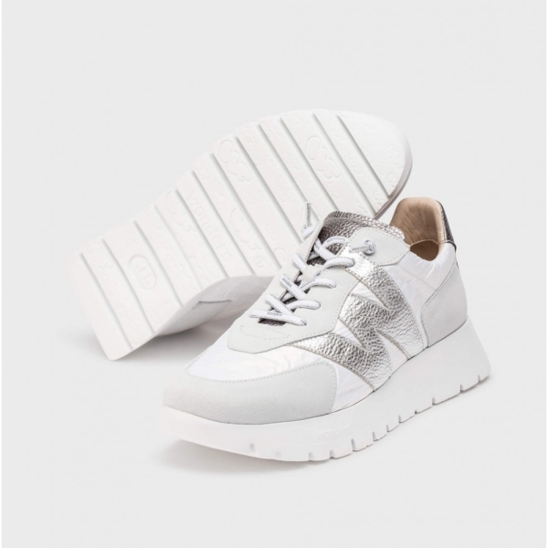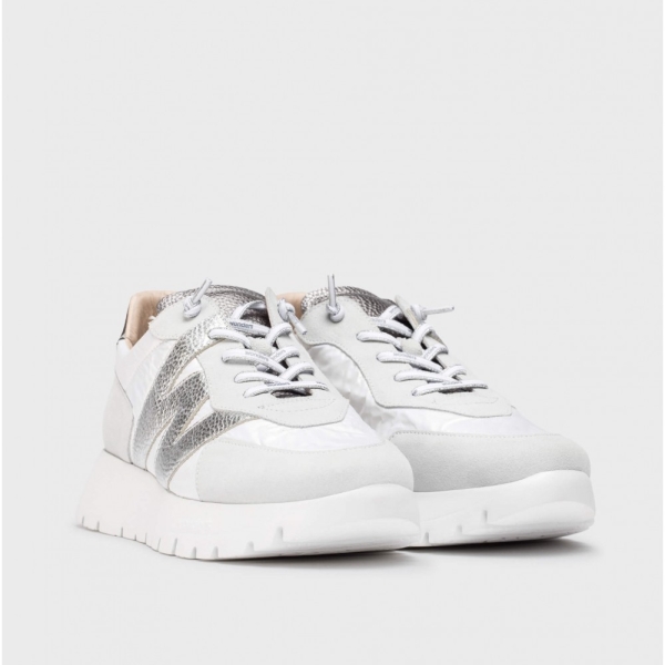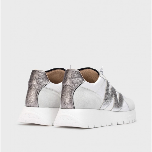 ABOTINADO COMBINADO EN NOBUCK Y TEJIDO, CON LOGOTIPO EN EL LATERAL Y SUJECCIÓN CON TIRAS ELÁSTICAS.